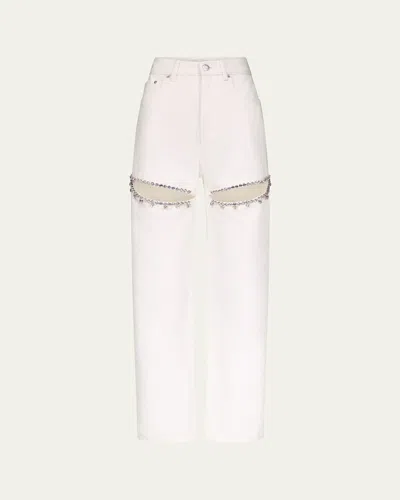 Crystal Cutout Slit Straight Leg Jeans In Black