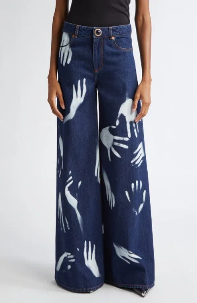 Crystal Ripped Relaxed Wide Leg Jeans In Blue