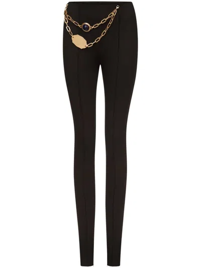 Chain Plate Belted Ponte Leggings In Black