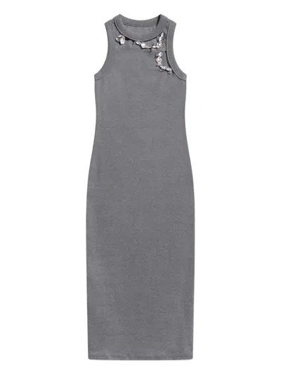 晶饰罗纹中长连衣裙