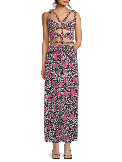 印花挖剪真丝中长连衣裙