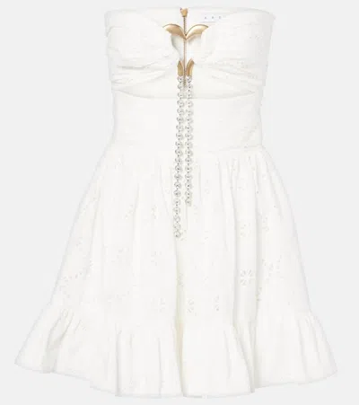 Crystal Strap Rosette Cotton Poplin Minidress In Off White