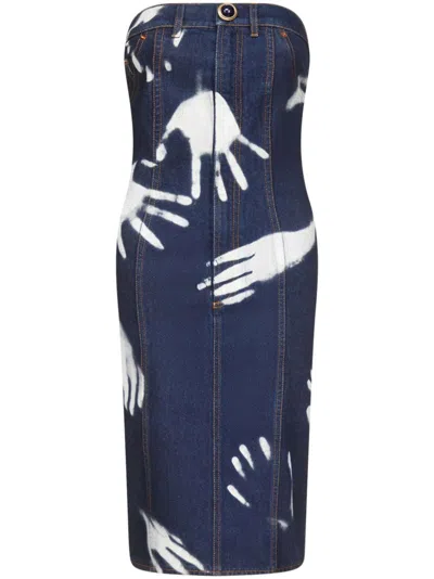 Handprint Strapless Minidress In Dark Blue