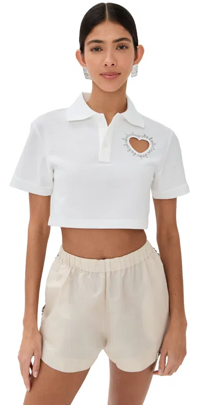 Crystal Heart Cutout Cropped Polo White