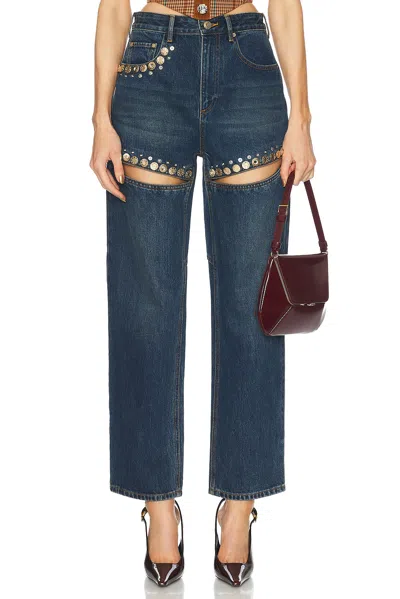 Crystal-embellished Cutout High-rise Wide-leg Jeans In Light Blue