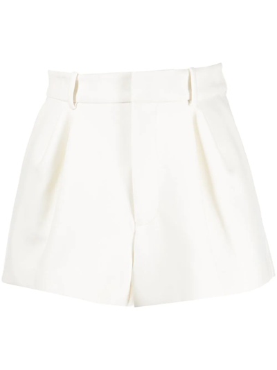 Crystal Grommet Striped Poplin Pleated Shorts In Blue