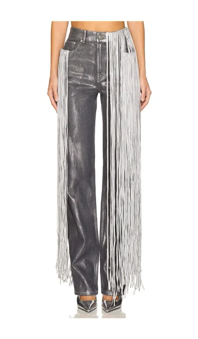Metallic Fringe Straight Leg Pant In Silver