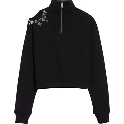 Crystal Cut-out Half-zip Sweatshirt In Black