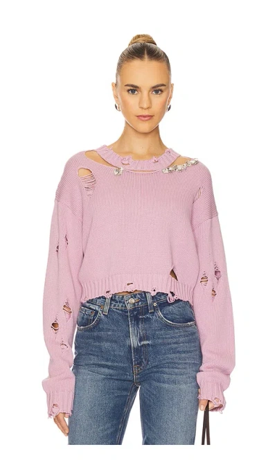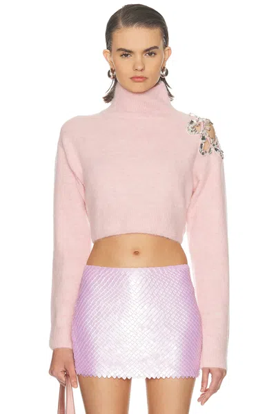 Crystal-cluster Flower Turtleneck Sweater In Pink