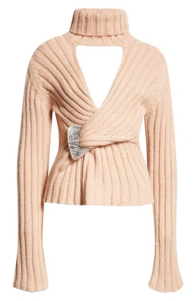 Twisted Knit Rib Turtleneck Sweater In Light Beige