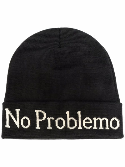 Wool Bennie Hat With No Problemo Allover Print In Black