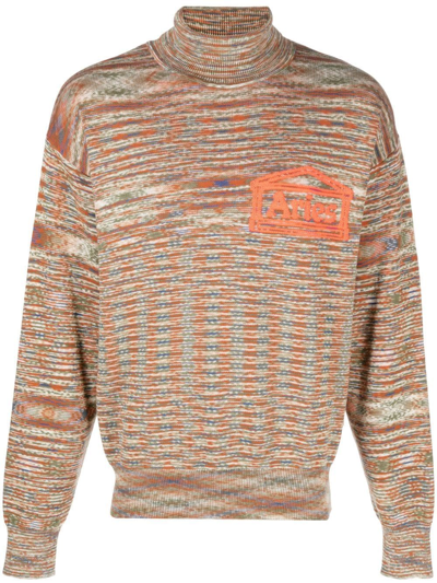 Temple Logo Space Dye Cotton Blend Knit Turtleneck Sweater In Multi-colour