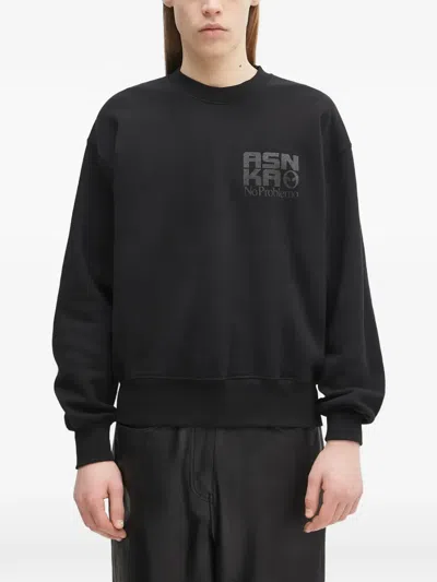 Mesh-panel Graphic Long-sleeve T-shirt In Black