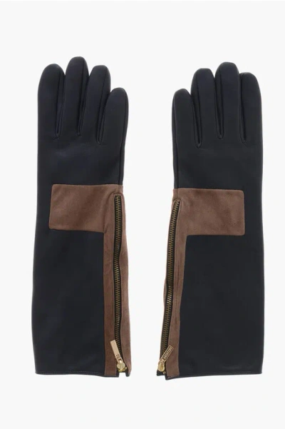 Opera Quilted Leather-and-nylon Gloves In Brown