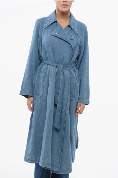 Emporio Double-breasted Denim Coat With Belt In Blue
