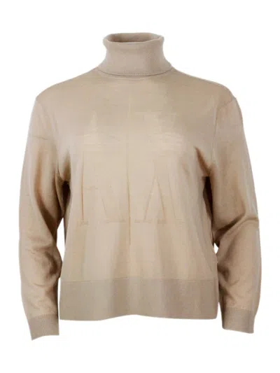 Knit Turtleneck Sweater With Allover Jacquard Logo In Black
