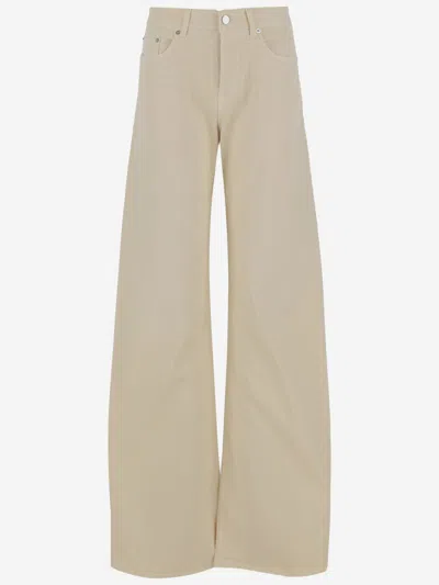 White Cotton Denim Jeans In Beige