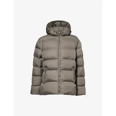Mens Olive Hooded Short Shell-padded Puffer Jacket In Green