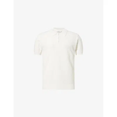 Mens Wave Textured Cotton-knit Polo Shirt White