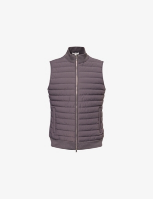 Mens Hybrid Quilted Stretch-woven Gilet In Gray