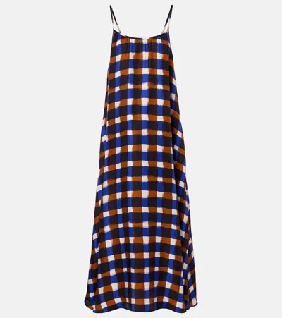 NAPOLI格纹真丝斜纹布加长连衣裙