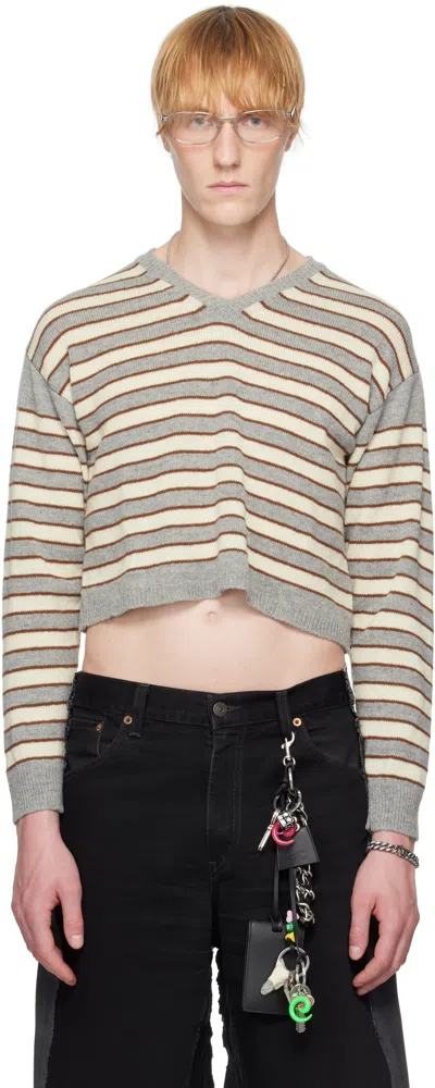 Gray & Beige Molly Knit Sweater In Striped