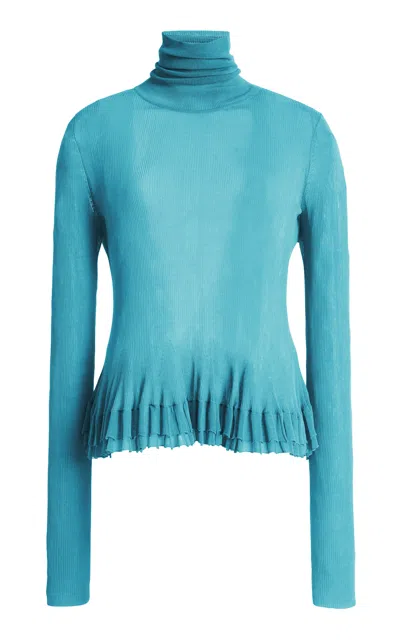 Merritt Sheer-hem Peplum Turtleneck In Blue