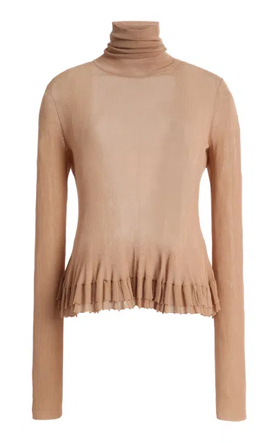 Merritt Sheer-hem Peplum Turtleneck In Brown
