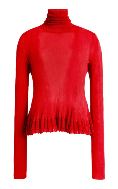Merritt Sheer-hem Peplum Turtleneck In Red