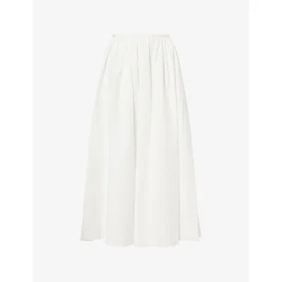 Womens White Connor Gathered-waist Cotton Midi Skirt Xs