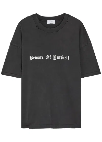 Beware Printed Distressed Cotton T-shirt In Black