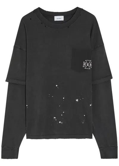 Layered Distressed Cotton T-shirt In Black