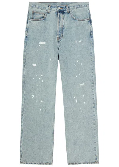 Paint Splatter Straight-leg Denim Jeans In Blue