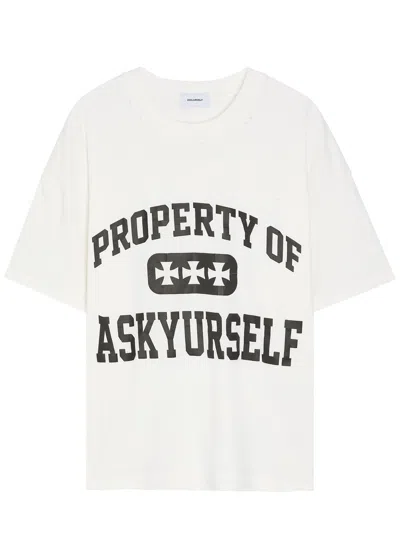 Printed Distressed Cotton T-shirt In Neutral