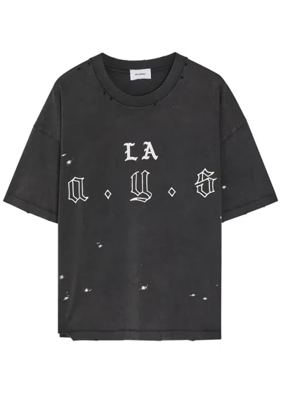 Logo-print Distressed Cotton T-shirt In Black