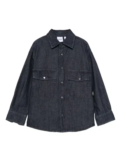 Kids' Band-collar Denim Shirt In Blue