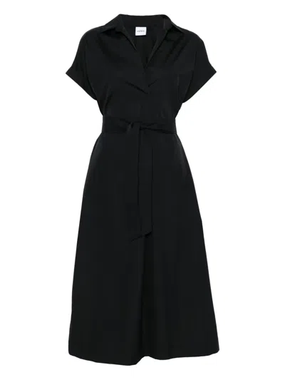 Halter Neck Midi Length Sleeveless Dress Waist Tie In Black