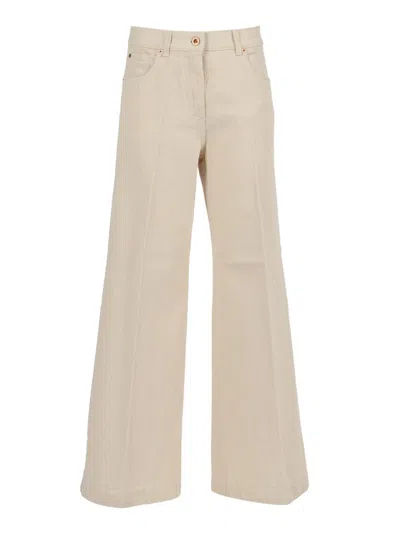 High-waisted Wide-leg Pants With Belt Loops And Seam Details In Neutral