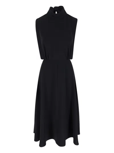 Halter Neck Midi Length Sleeveless Dress Waist Tie In Black