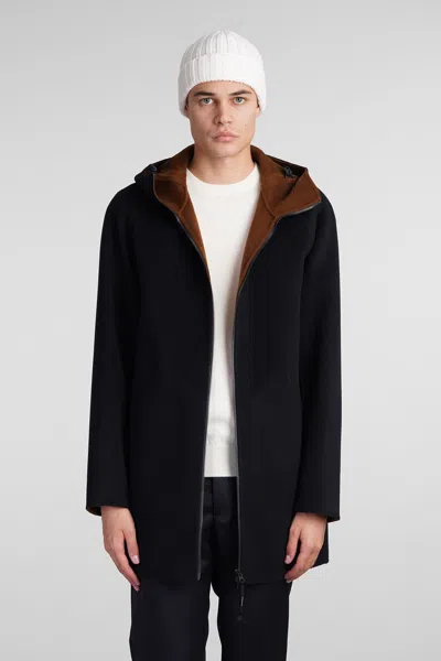 Long Tailored Coat In Smooth Polyester Finish In Black