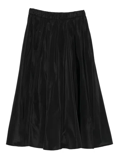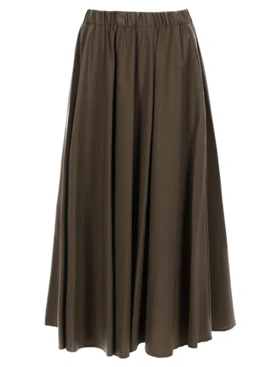 Expanded Midi Skirt With Elastic Waistband In Brown