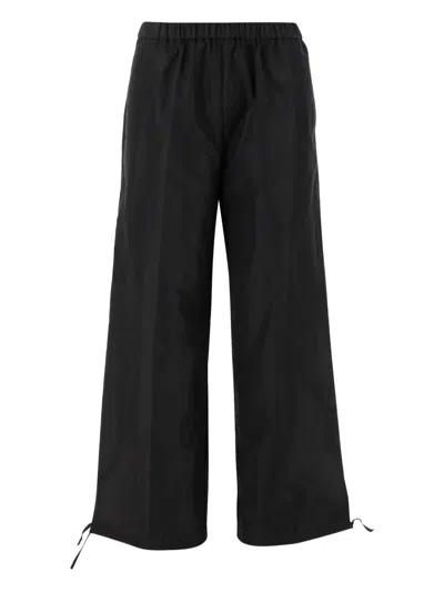 Cotton Trousers With Belt Loops And Two Side Pockets In Black
