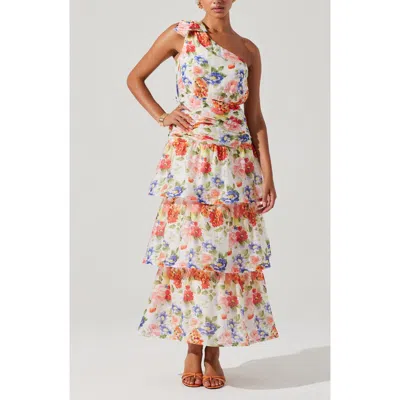 The Label Natali Floral Print One-shoulder Tiered Dress In Multi