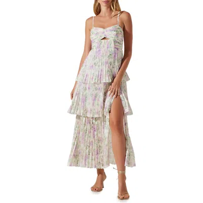 The Label Daytona Floral Pleated Tiered Dress In Lilac Floral