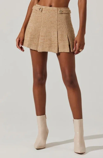 The Label Bronwyn Pleated Tweed Miniskort In Camel