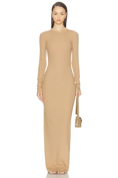Long Sleeve Crewneck Butter Rib Maxi Dress In Brown