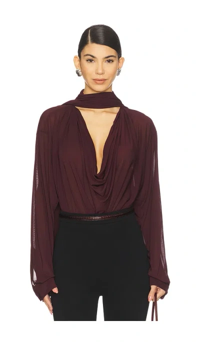 Draped Collar Blouse In Burgundy