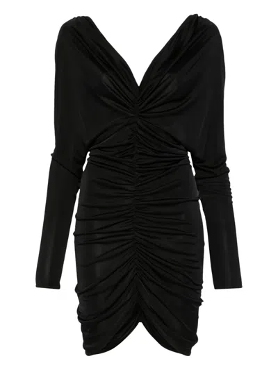 不对称褶饰中长连衣裙