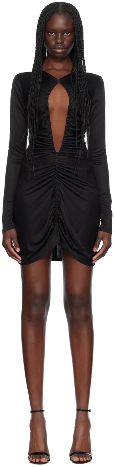 Black Open Front Ruched Minidress In C0114 Black