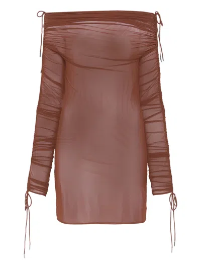 Ruched Strap Mini Dress In Brown